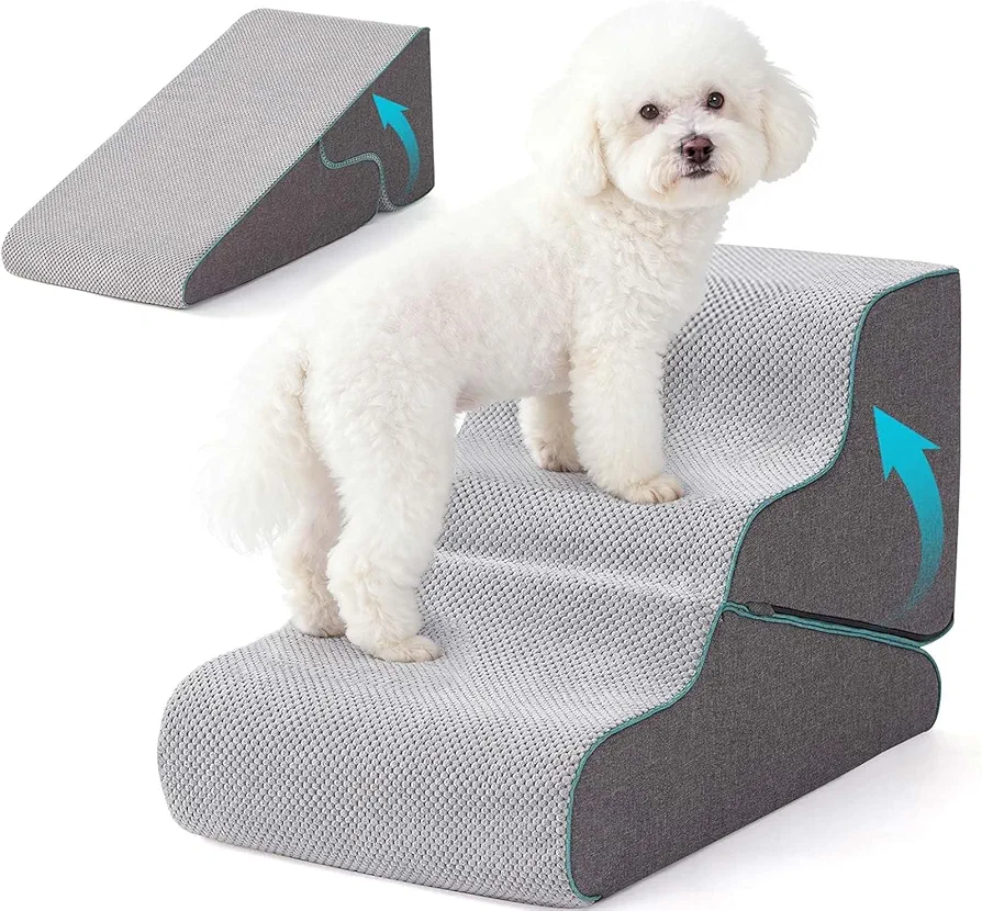 A dog stairs for small dogs is a thoughtful and practical pet accessory designed to help your little furry friend reach higher places—like beds, couches, and cars—without jumping, straining joints, or risking injury, especially for senior dogs, puppies, or breeds with short legs and delicate bones, as these stairs typically feature sturdy, non‑slip steps with soft, comfortable treads that reduce slipping and provide secure footing so your dog can climb up and down with confidence, while lightweight yet durable construction—often made from foam, wood, or strong plastic—ensures long‑lasting use with minimal wear, and many models include removable, washable covers that make cleanup simple after daily use; ergonomic design and gentle incline help reduce pressure on hips and knees, supporting dogs recovering from surgery or those with arthritis or mobility issues, and the compact size, foldable features, or built‑in handles make these stairs easy to reposition, store, or travel with so your pet always has safe access wherever you go, whether at home, at a friend’s house, or on vacation, while low‑profile edges and wide steps encourage even hesitant dogs to approach and climb without fear, making training easier and helping build independence; dog stairs also help protect your furniture by reducing jumping‑related scratches or damage, and they promote better overall joint health by minimizing high‑impact landings that can stress bones and muscles, while anti‑skid bases prevent sliding on hardwood, tile, or carpeted floors so your pet feels stable and secure, even when moving quickly or turning on the steps; when choosing a dog stairs for small dogs on Amazon, you can explore product details such as step height, total number of steps, material quality, weight capacity, and verified customer feedback to compare options based on your dog’s size, age, and mobility needs, ensuring you select a model that matches both style and function, and overall, quality dog stairs help improve your pet’s comfort, safety, and confidence, giving them easier, worry‑free access to everyday favorite spots while supporting long‑term joint health and independence throughout life’s stages.