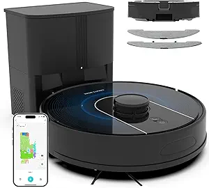 - Features: Self-emptying dustbin, precision navigation, powerful suction, app control, multi-surface cleaning
