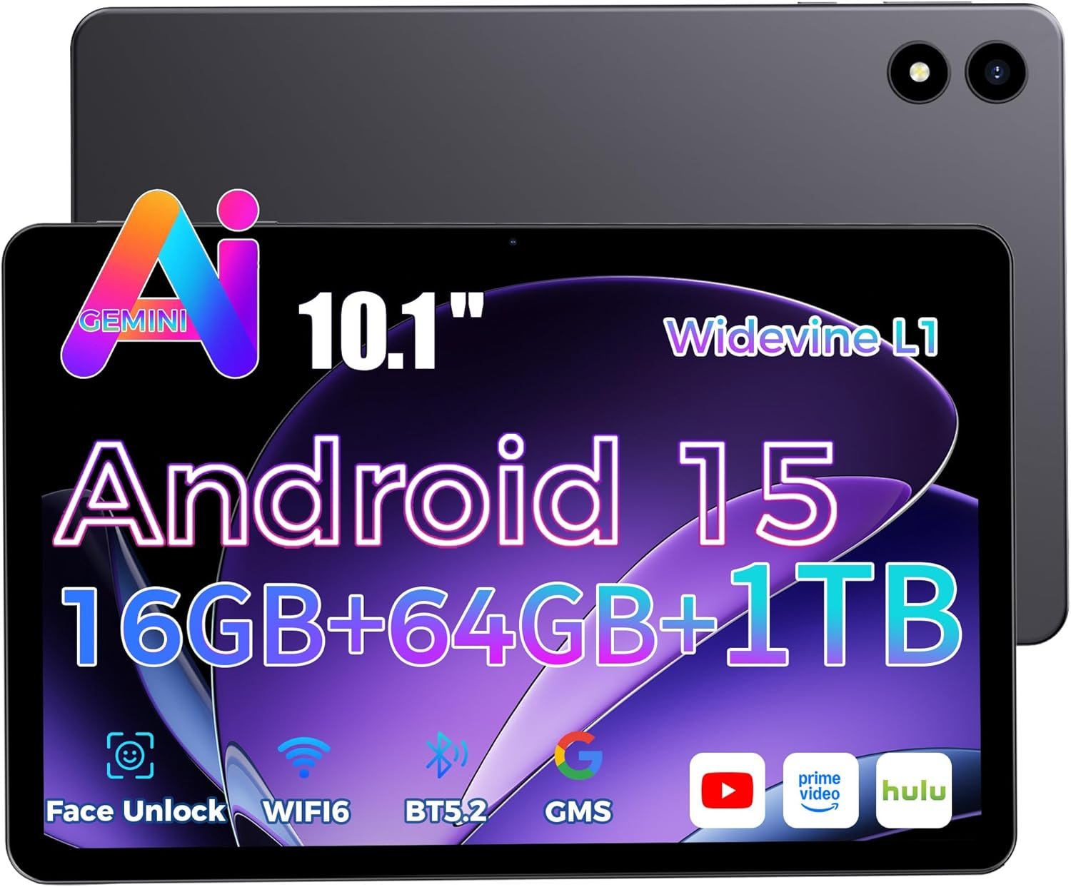Tablet 10.1 inch Android 15 with Gemini AI, 16GB
